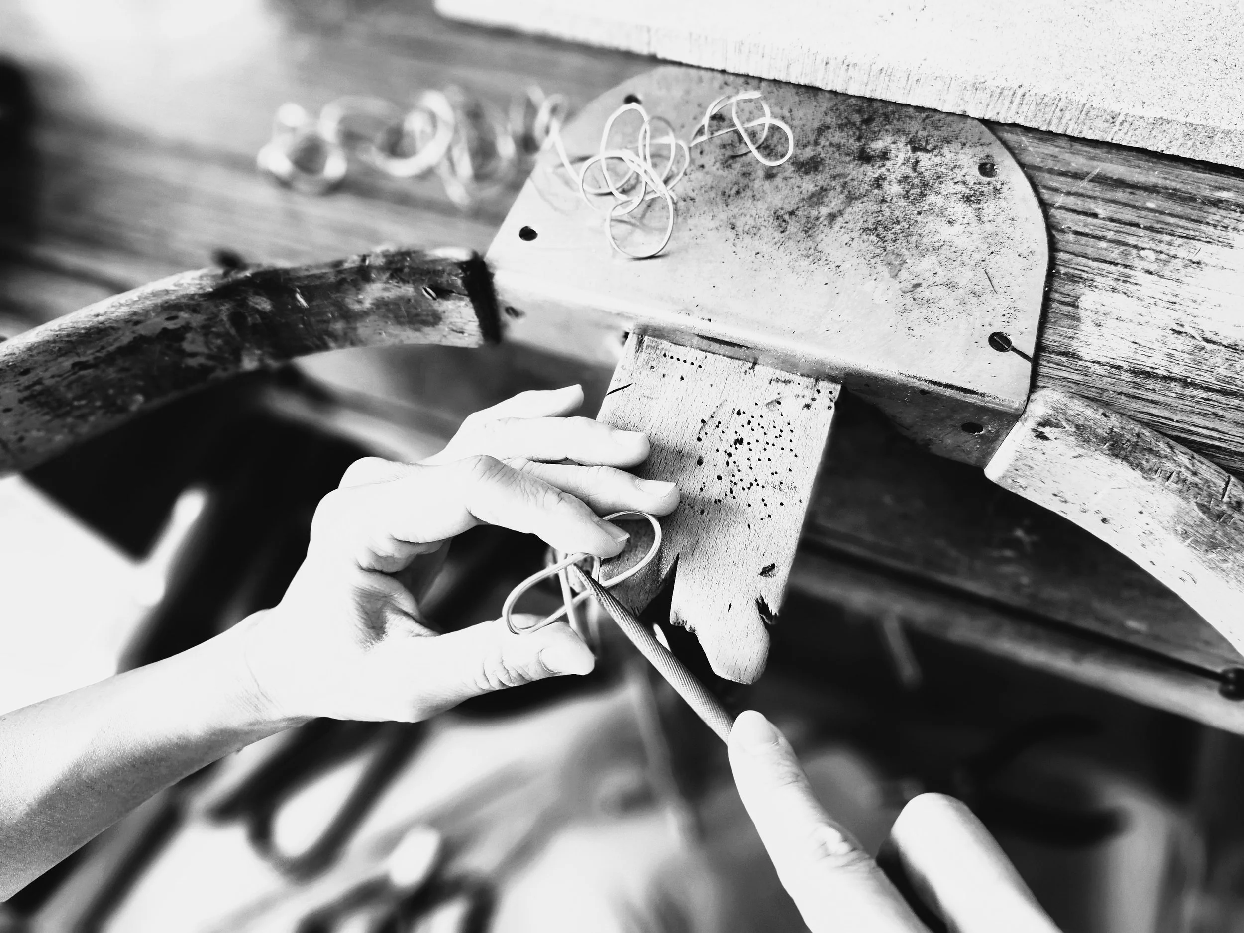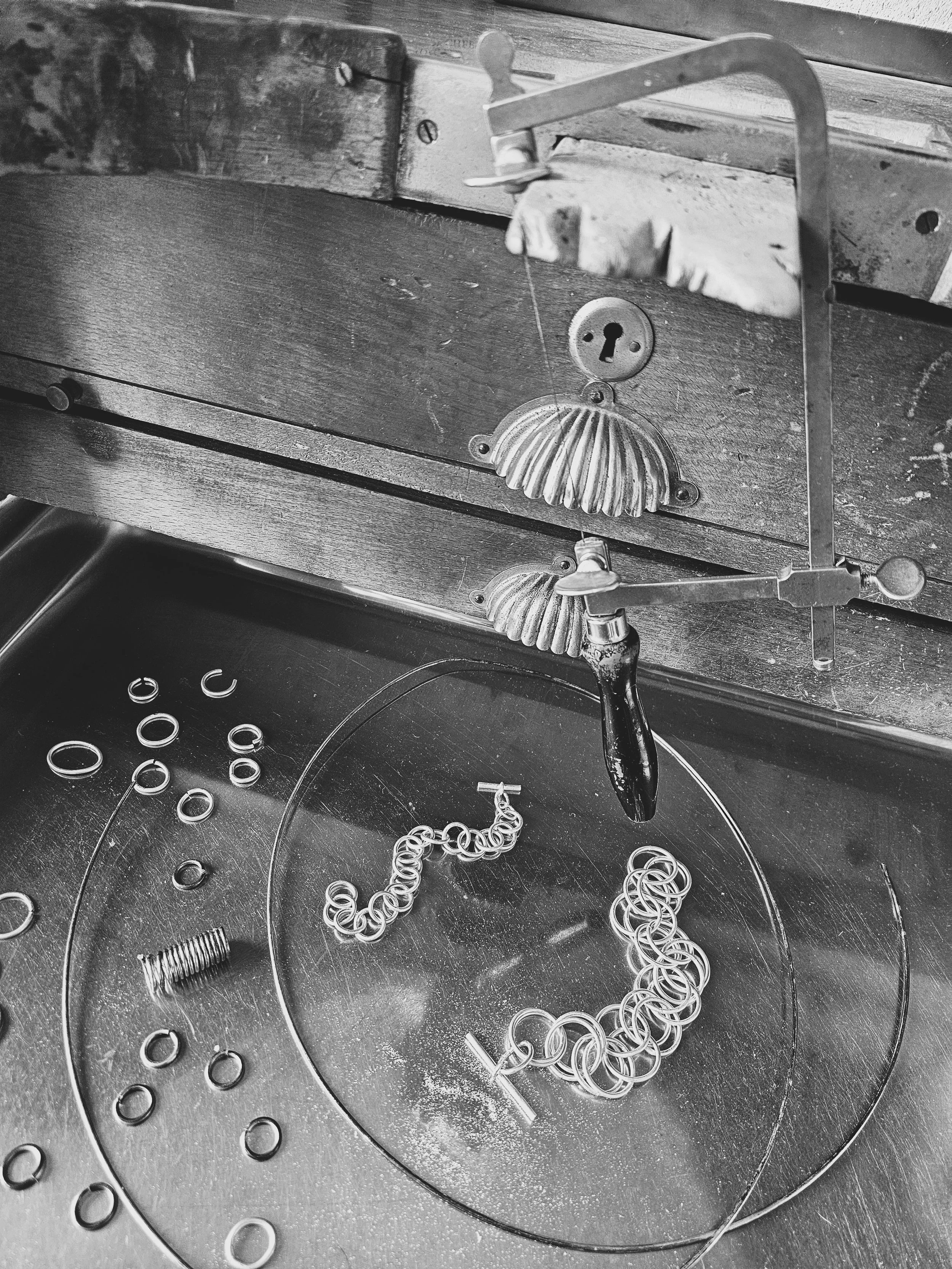 Cada pieza es diseñada y fabricada a mano en Valencia, España, donde combinamos la pericia en los métodos tradicionales de creación de joyas con un enfoque contemporáneo. La mayoría de nuestras piezas se fabrican bajo pedido, lo que nos permite minimizar el desperdicio y garantizar una producción responsable y personalizada.