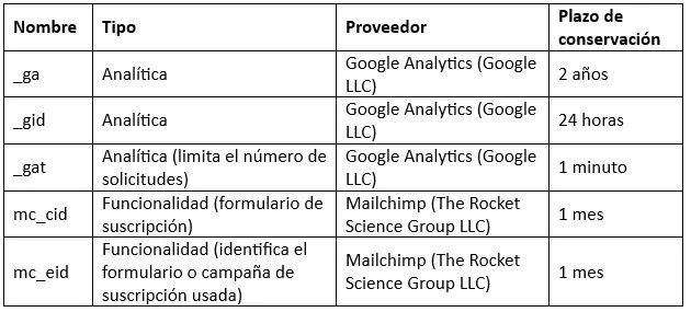 Cookies funcionales: Permiten la correcta gestión de formularios de suscripción y el mantenimiento de preferencias básicas del usuario.